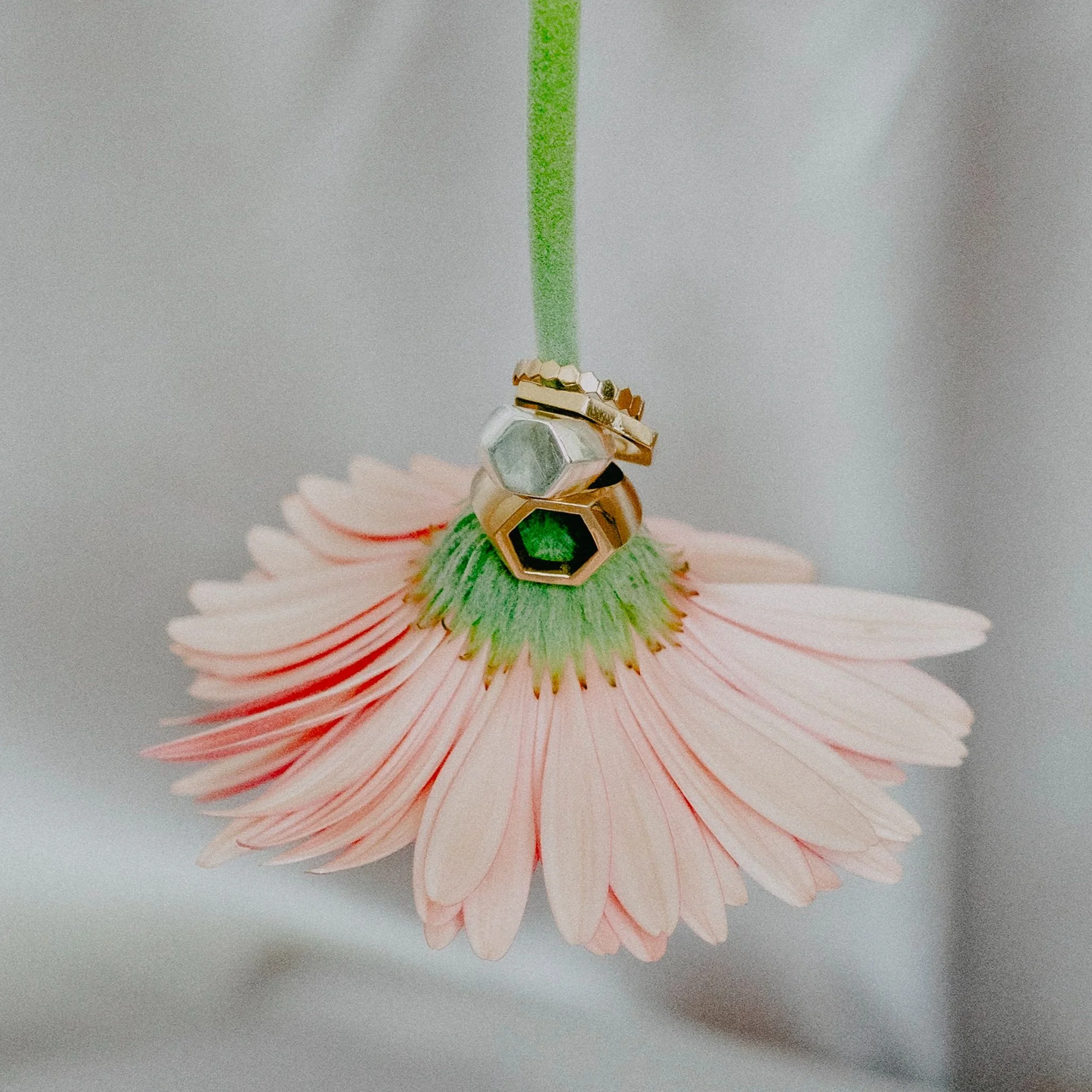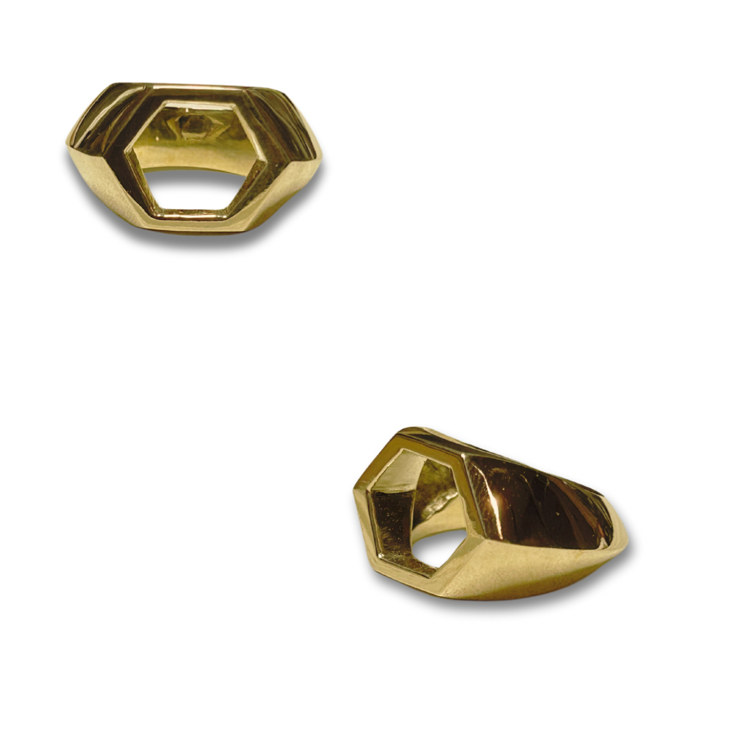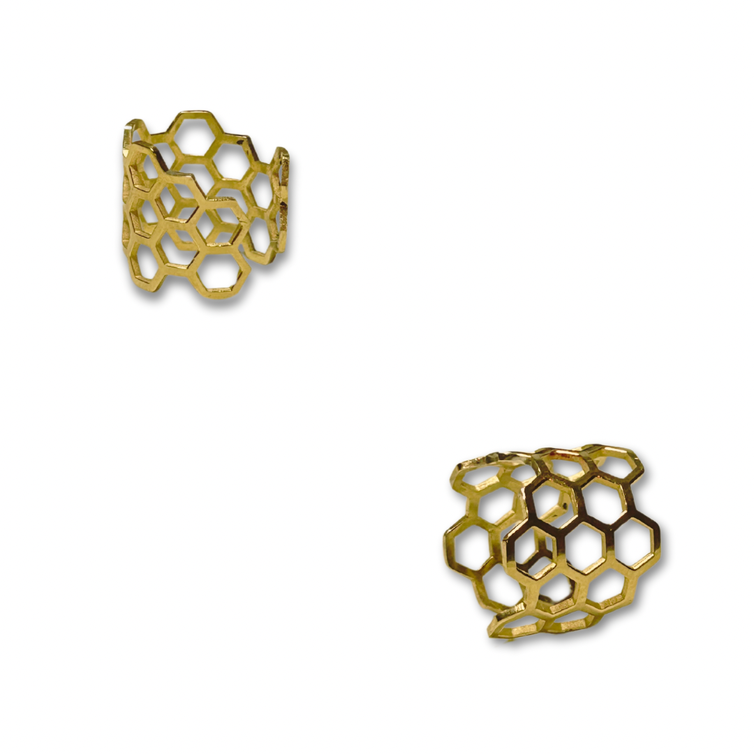Categories: All Necklaces Earrings Bracelets Rings All / Gift Card from $25.00 Drone Honeycomb Band from $220.00 Complex Honeycomb Earcuff from $100.00 Honeycomb Band from $220.00 Hexagon Ring from $400.00 Hexagon Signet Ring from $450.00 Hexagon Window Ring from $400.00